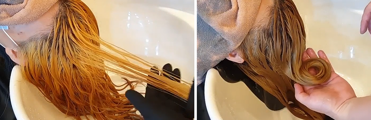 모발이 녹을 때 까지 무리하게 탈색을 할 필요가 없어요.